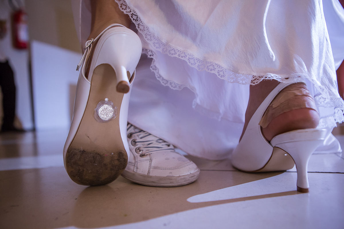Quando fotografei seus pés mostrando todo o clima de descontração e dança que foi o casamento, ela se preocupou perguntando se eu tiraria o curativo que estava em seu pé. Eu disse pra ela não se preocupe!