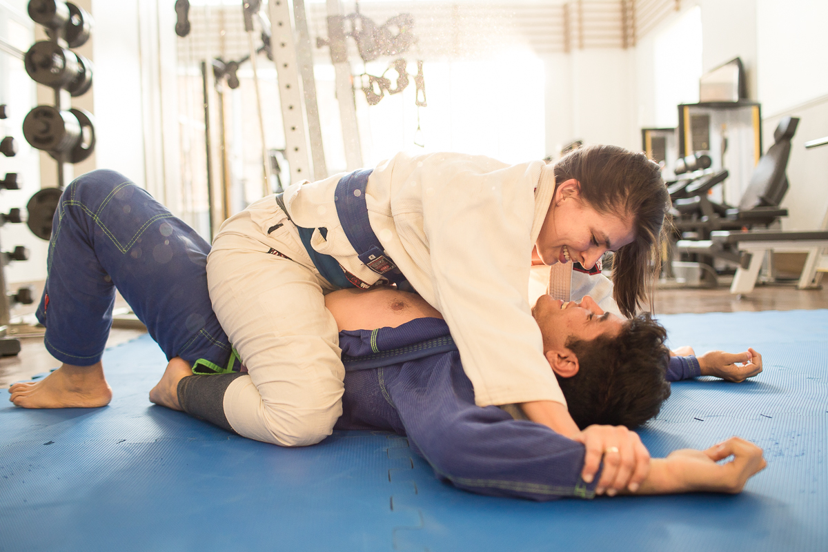 Quando perguntei para Renata, como foi que ela conheceu o Edmar, já me repondeu: Eu o conheci no meio das minhas pernas. Eu tentei disfarçar o espanto e perguntei rindo, como assim? _ Assim no meio das minhas pernas, no tatame, lutando jiu jitsu. Achei muito bacana, isso já era muita história pra contar...